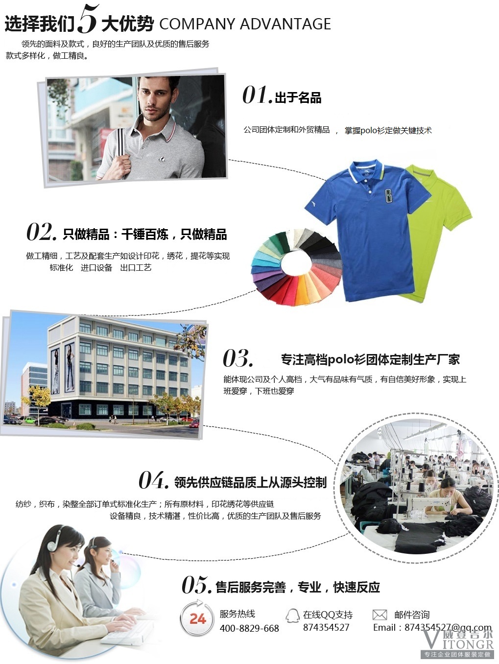 深圳市宏展服飾有限公司專業從事絲光棉T恤定做,polo衫定做,衛衣定做,T恤定做,夾克衫定做,羽絨服定做,襯衫定做,羊毛衫定做,運動服定做,沖鋒衣定做的企業。專注于高端服裝團體定制,合作客戶有華為,IBM,沃爾瑪,武漢大學,邁瑞,海能達,聯想,微軟,百思可樂,青島啤酒,東部華僑城,歡樂谷,中國平安,深圳市大運會,皇冠假日酒店,凱斯,嘉吉糧油,新國都,西安電力等。持守“專業成就價值,品質造就信賴”,堅持做“可靠服裝團體定做供應商”的價值觀。